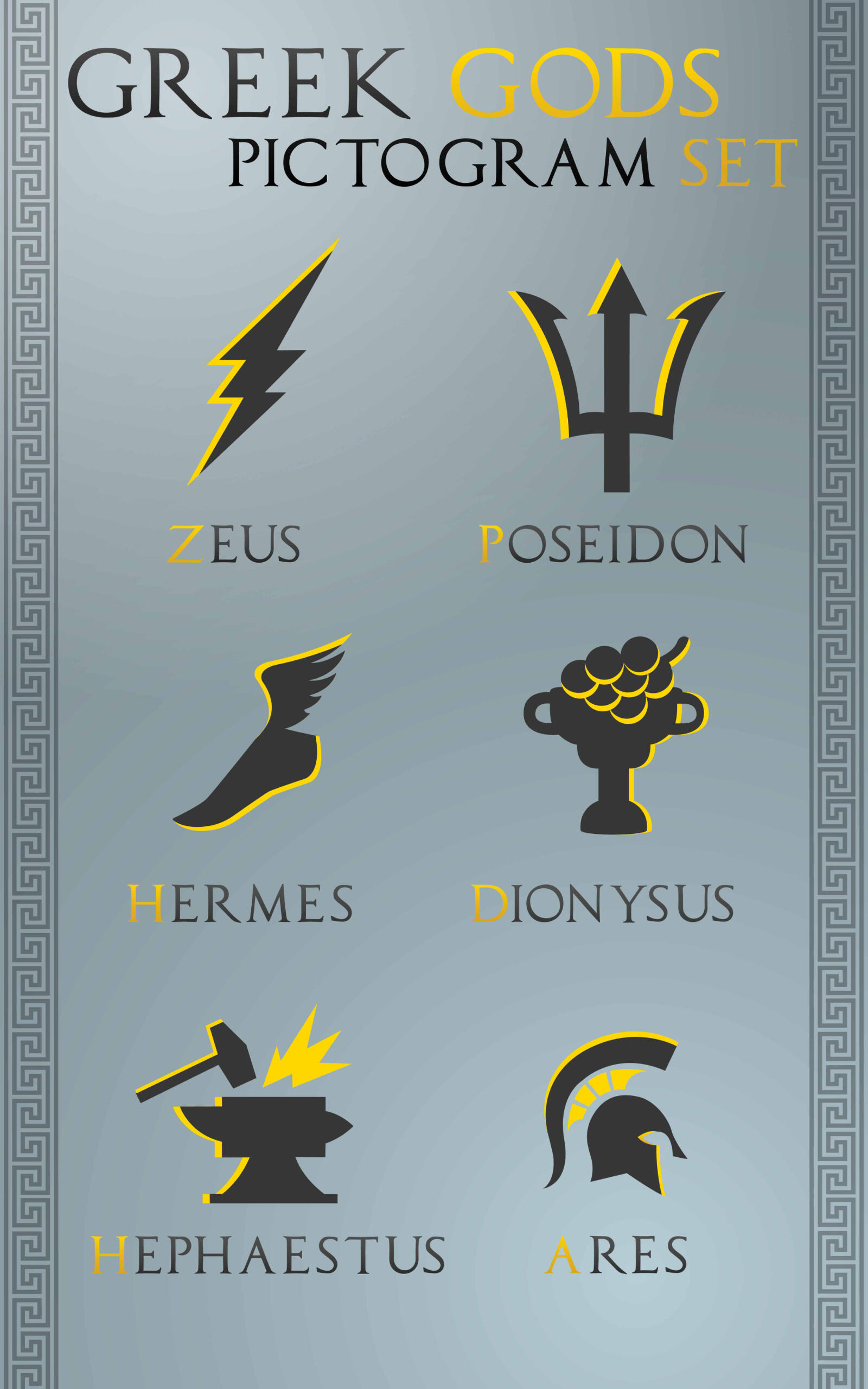 Ez a piktogrammszett a görög mitológia hat istenét jeleníti meg stilizált formában, egy letisztult és egységes vizuális nyelvet használva. A szimbólumok tervezésekor fontos szempont volt az egyszerűség, az azonnali felismerhetőség és a modern grafikai eszköztár alkalmazása. A munka teljes egészében Adobe Illustratorban készült.