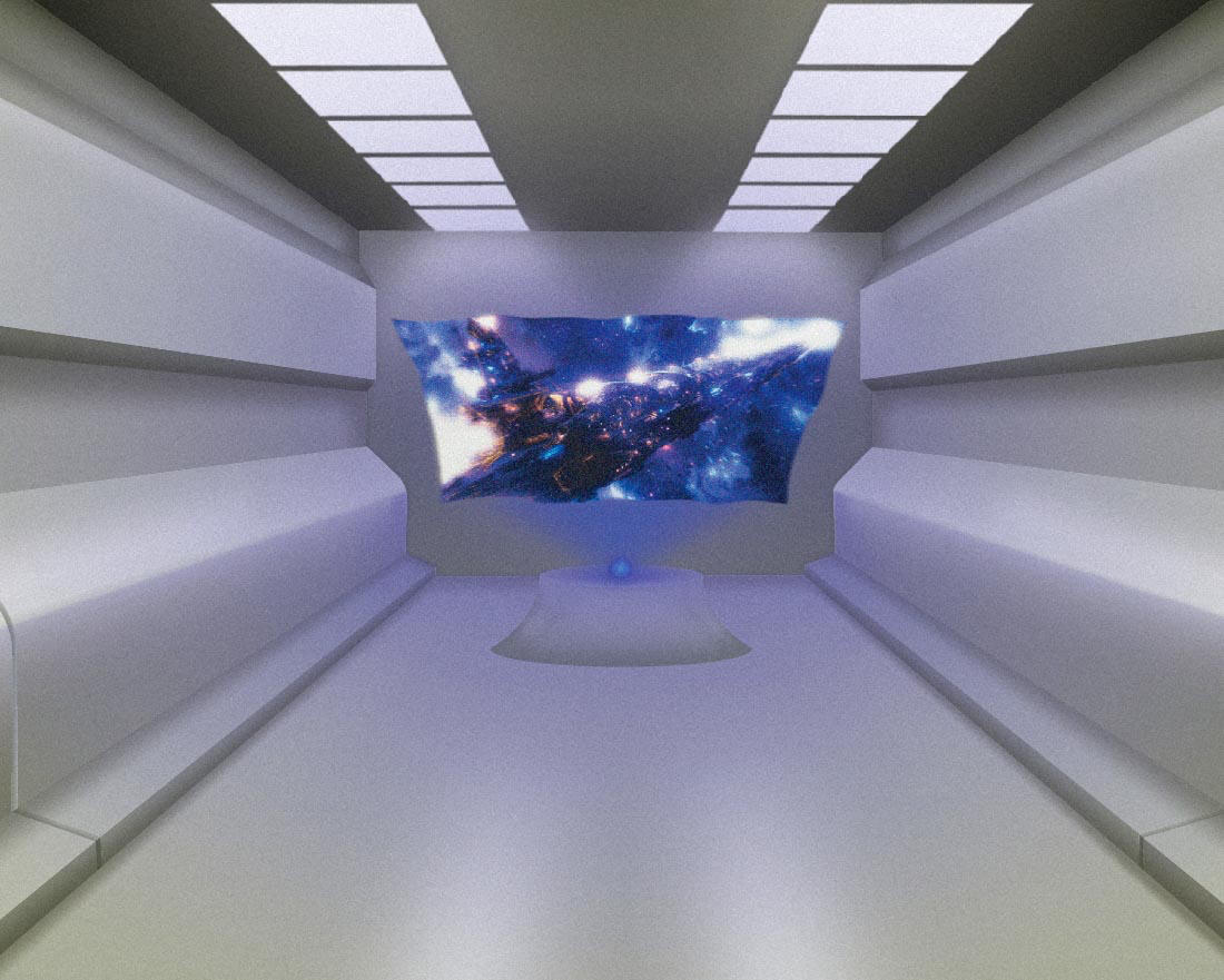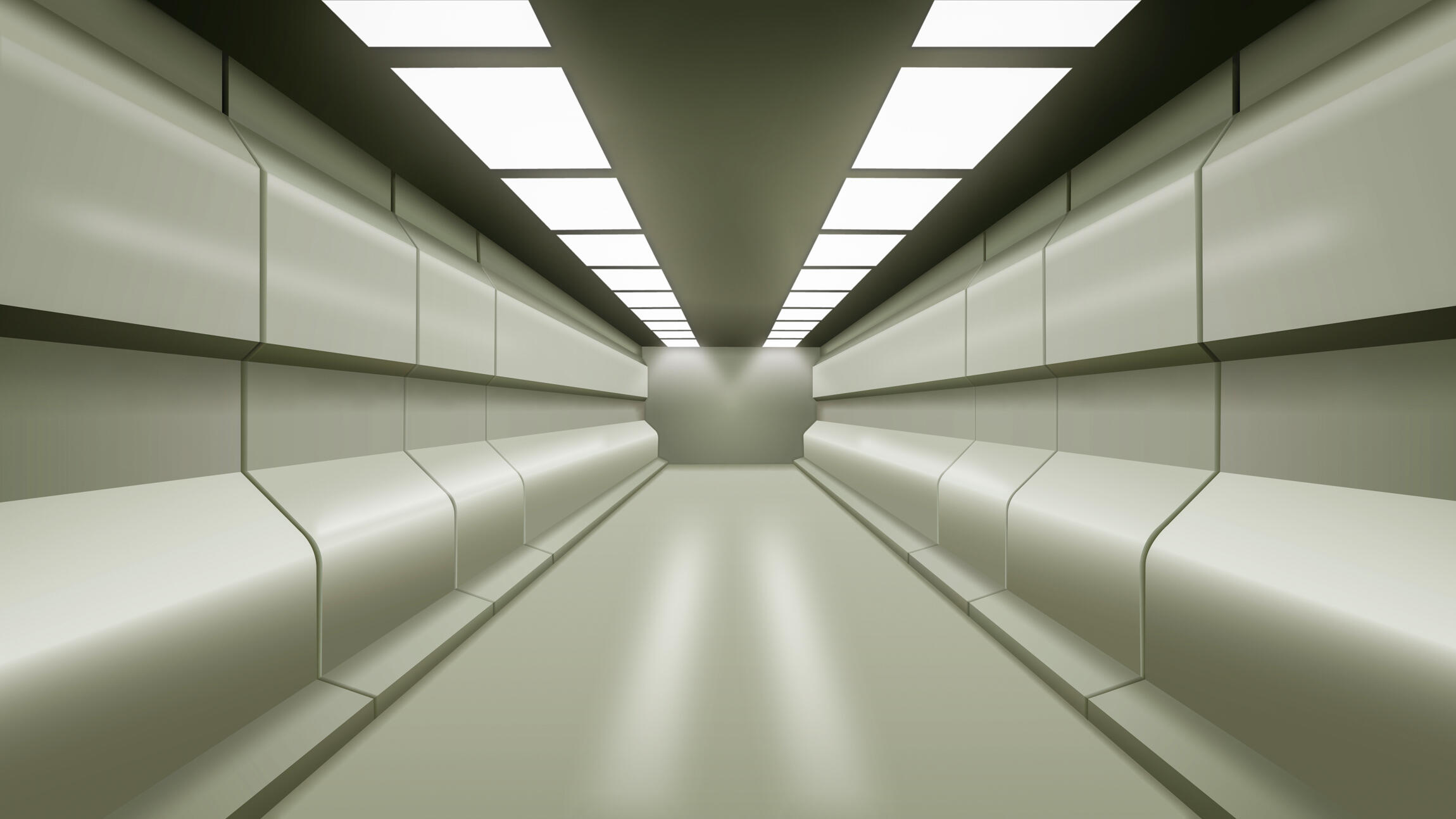 Saját készítésű illusztráció, amely egy letisztult sci-fi folyosót ábrázol. Az alkotás Adobe Illustratorban készült, a futurisztikus hangulatot geometrikus formákkal és visszafogott színekkel értem el. A szekció elején a kép egy olyan változata látható, amely a folyosó végpontjára közelít, ahol egy hologram vetül ki a térbe.