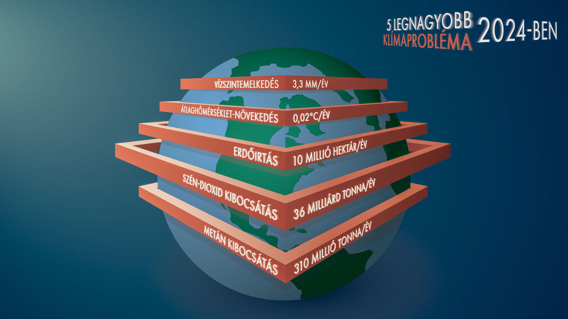 Ez az infografika a 2024-es év öt legnagyobb klímaproblémáját mutatja be egy látványos, 3D-hatású diagram formájában. A vizualizáció különlegessége, hogy minden elem 2D-ben készült, mégis térbeli hatást kelt. A földgömböt átszelő sávok nagysága a problémák mértékét szimbolizálja minél nagyobb a „gyűrű”, annál súlyosabb a kihívás. A teljes munka Adobe Illustratorban készült, külön 3D eszközök használata nélkül.